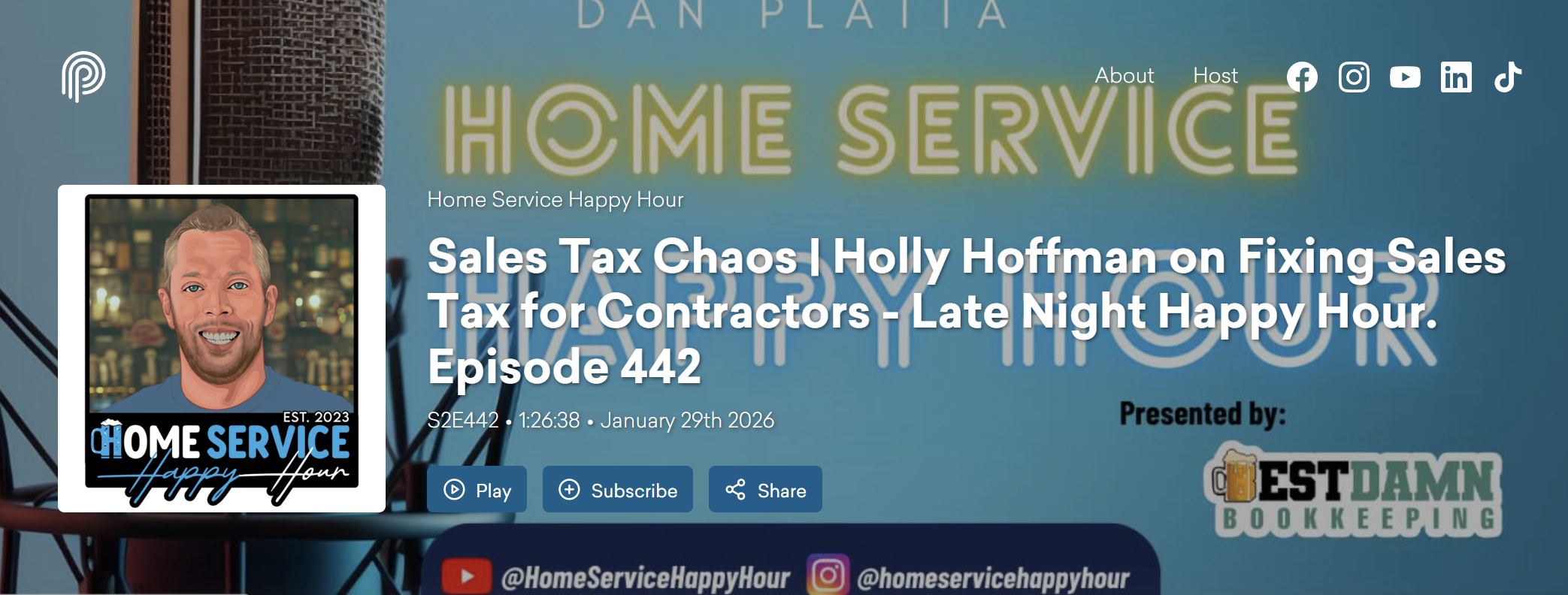 In this episode, we dive into sales tax confusion that trips up home service businesses every single day. I’m talking with Holly Hoffman, the Sales Tax Lady, about why sales tax feels scary, how contractors accidentally get it wrong, and what actually matters when the state comes knocking. If you run a service business and hope sales tax just takes care of itself, this conversation is going to wake you up.
